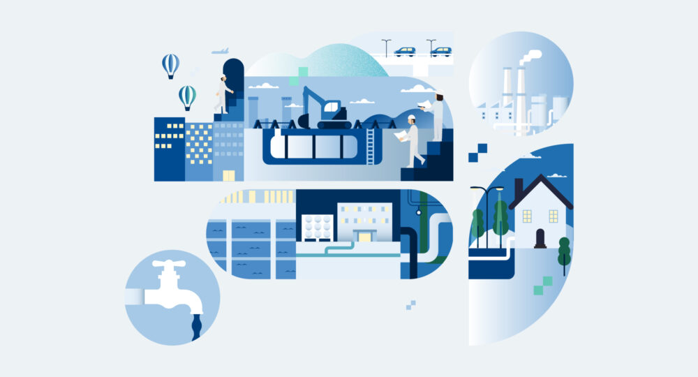 ブルーを基調にし、水の循環をイメージできる配色やイラストを意識しました。