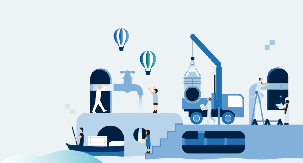 配水管の布設工事は目に見えにくいため、事業内容ページでは水道管工事の仕組みが分かりやすいよう図解を作成しました。